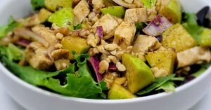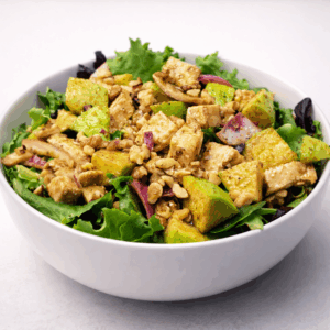 Chicken & Green Apple Salad w/ house vinaigretteSpring mix, rotisserie chicken, red onions, green apples, walnuts, and vinaigrette dressing. Served with French Bread. |