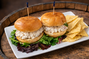 JUMBO Turkey Char-Broiled Slider Platter(3) – Charbroiled turkey patties topped with medium cheddar cheese, thinly sliced red onions, and spicy pickle slices. Served on buttery brioche buns. Comes with Carin’s special burger sauce and a side of creamy potato salad. |